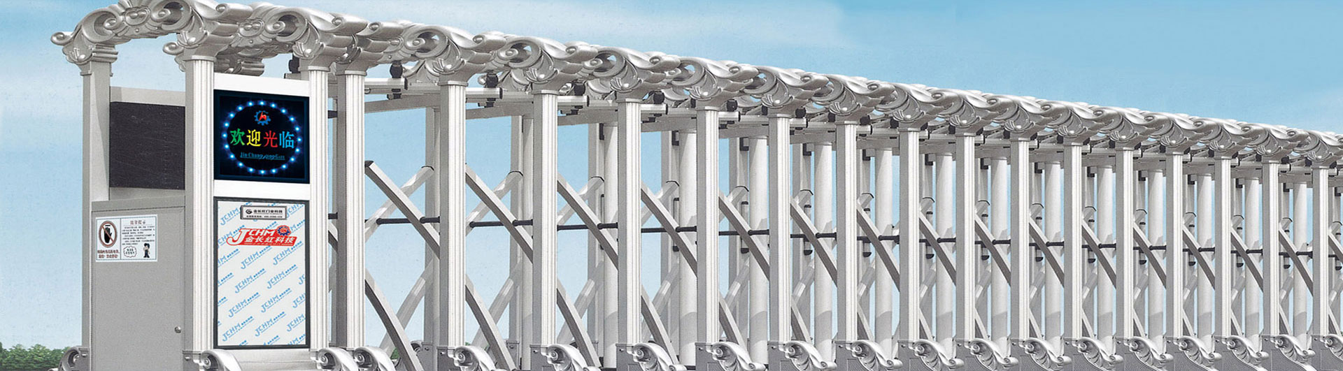 總部生產(chǎn)基地?fù)碛?條完善的生產(chǎn)線,具備年產(chǎn)十萬米電動伸縮門生產(chǎn)能力